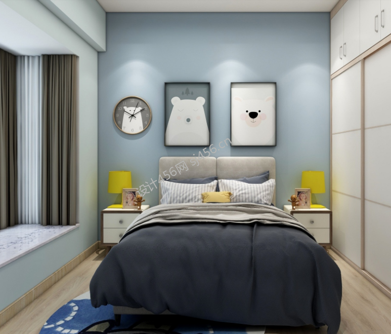 140㎡四居室现代简约风格儿童房背景墙设计图