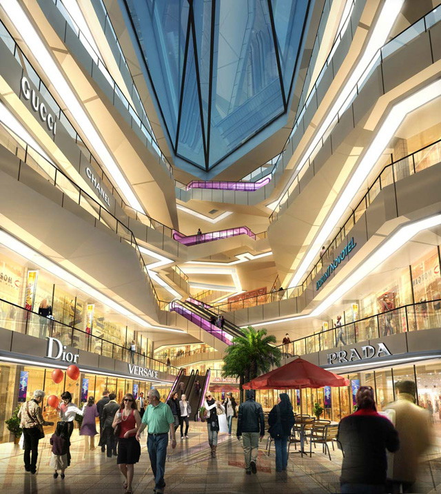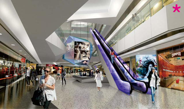 在将绚丽的外观设计理念引入购物中心内部后,福州五四北泰禾广场特别设置从1层直达4层的“飞天梯”,并以装有4面LED屏的巨型钻石,360度吸引眼球,打造令人惊叹的非凡空间。