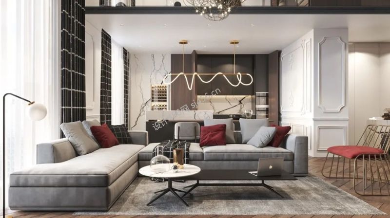 120平方轻奢风格三居室客厅家居装饰装修案例