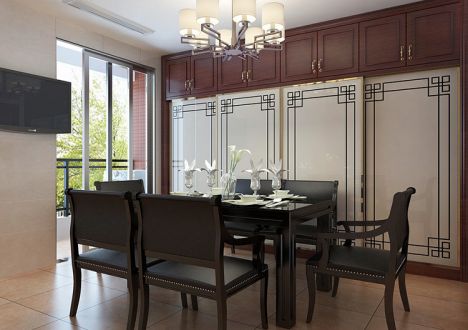 锦绣山河晓月湖200平方四室新中式装修案例风效果图