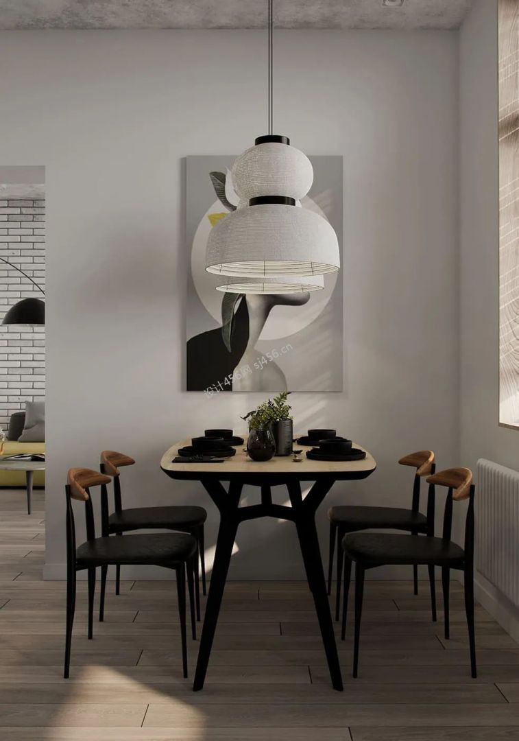 158平米简约风格三居室餐厅吊灯设计装修效果图