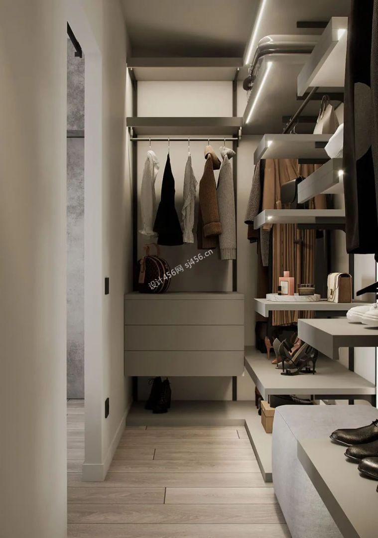 158平米简约风格三居室独立式衣帽间装修效果图