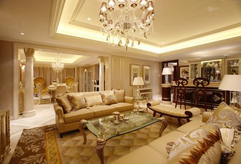 蓝月湾古典欧式123平米三室两厅装修案例风效果图