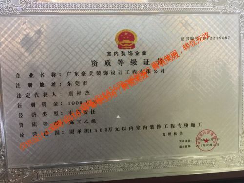 广东豪美装饰设计工程有限公司是一家正规注册建委批核资质的以一流的设计,严格的施工,完善的服务全配套功能的装饰公司。公司在设计理念和技巧,施工 管理和操作,财务管理,材料采购和配送,优质的服务等方面,摸索出一套适应市场而且较为完善的管理经验,并制定了一系列 行之有效的督促机制与之配 套。先后在东莞、广州、惠州、佛山、中山、广西、四川、湖北、江西、厦门等大中城市成立多家全资公司。 07年,豪美装饰进驻东莞市场,我们深知东莞人高素质,高要求,快节奏,高品位的生活特征,也例会东莞惊涛拍岸的竞争形式。因此,我们十分注重员工 品德教育和客户优质服务规范。我们把提升企业形象和满足客户需求作为立足点,全力以赴为广大东莞市民营造一个充满活力的品味空间。我们认为,只有 企业员工素质得到全面提高,才能建立良好的公司形象。同时我们推崇“做装修=做朋友”的诚信律条。企业是做出来的,设计上的独具匠心,施工上的精雕 细做,材料上的健康环保,质量上的标准精良,服务上的全心全意,是豪美装饰成功的根基所在。本着对“客户重要的事,对豪美同样重要”的不变宗旨, 为业主提供装修,生活整体解决方案,家居文化专业性服务,豪美人将一如既往,以创新的设计,优质的工程,及时的服务,永远地为客户创造真正的价值。 “雕梁画栋构华堂。”面对竞争激烈的装饰市场,豪美人决心,同舟共济,以一流的设计水平,一流的施工技术,创出自己的品牌,亮出自己的特色,在同行 业中益竞风流,打造大朗的家装旗舰。 让每位客户满意,这是我们的承诺。做装修=做朋友,这是我们的经营理念。 我们的设计理念:“以人为本”,注重于“重装饰,轻装修,巧陈设。” “美的神韵,尽在豪美。”我们竭诚为您服务,携手构筑如诗如画的家居乐园!