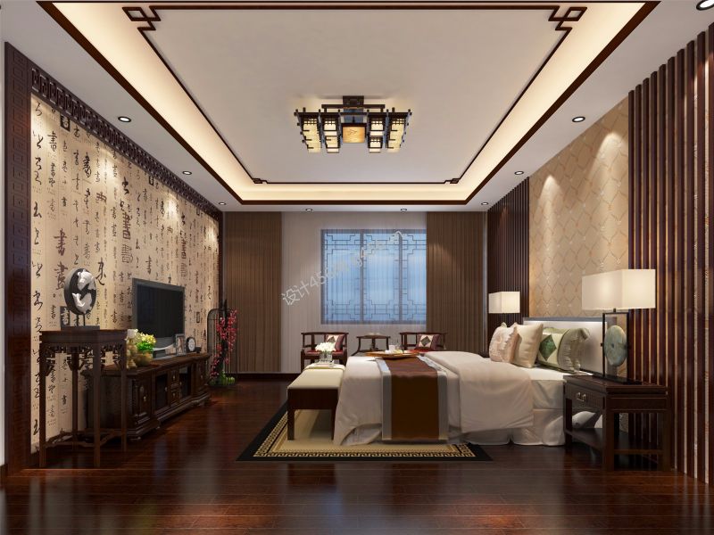 万科滨海大都会中式风格143平米四室两厅装修案例风效果图