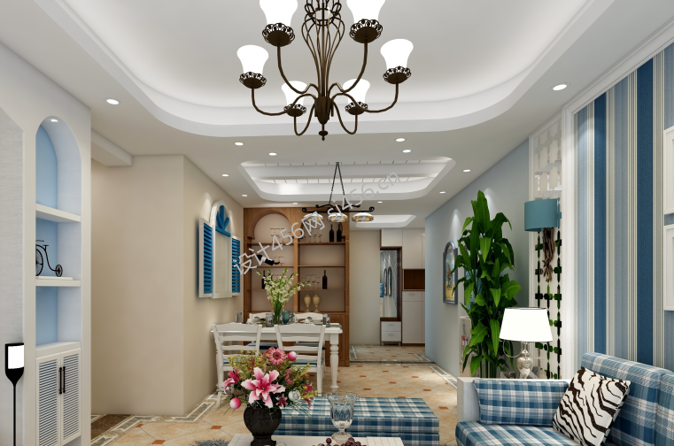 华讯大宅地中海风格113平米三室两厅装修案例风效果图