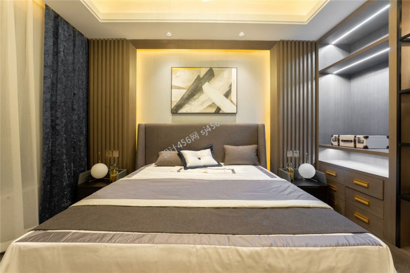 轻奢风格113平米三室两厅卧室床头装修效果图