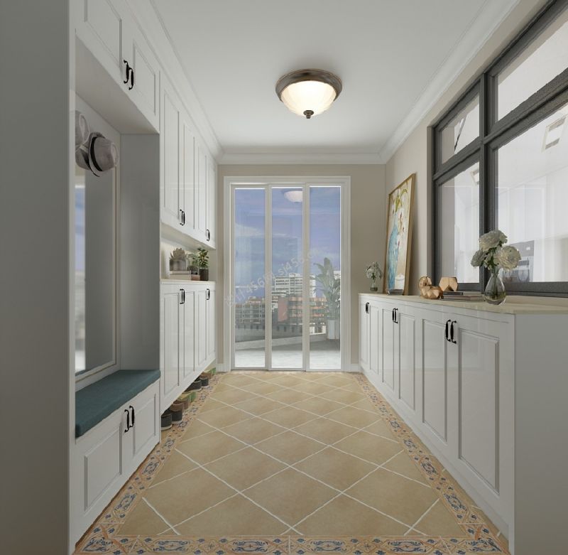 138平米美式风格四居室进门玄关鞋柜装修效果图