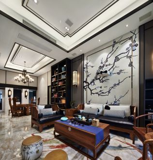 新世纪颐龙湾200平米现代中式风格四居室装修案例风效果图