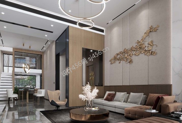 万科滨海大都会242㎡现代简约风格别墅装修案例风效果图