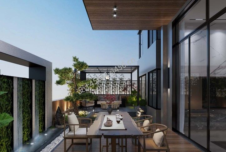 210平米轻奢风格别墅阳台茶室装修设计图片