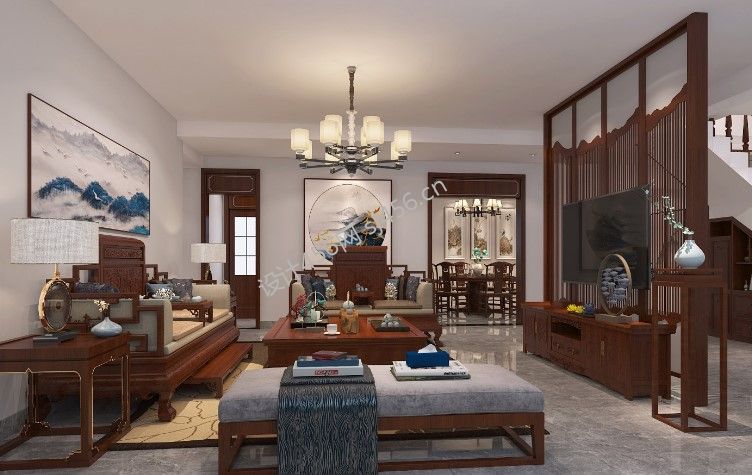 万科皇马郦宫340平米新中式风格别墅装修案例风效果图