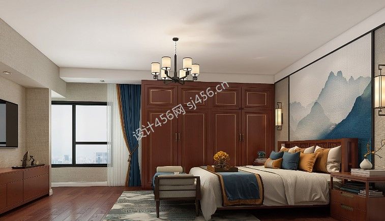 260平米新中式风格别墅卧室布局装修设计案例