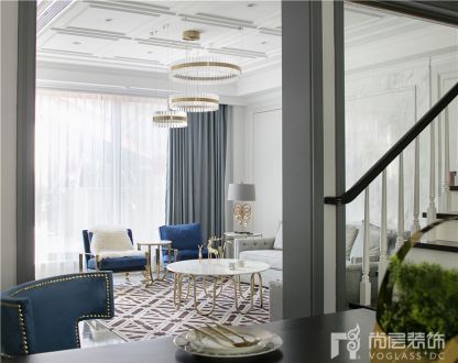 安亭瑞仕华庭现代美式风格405平别墅装修效果图风效果图
