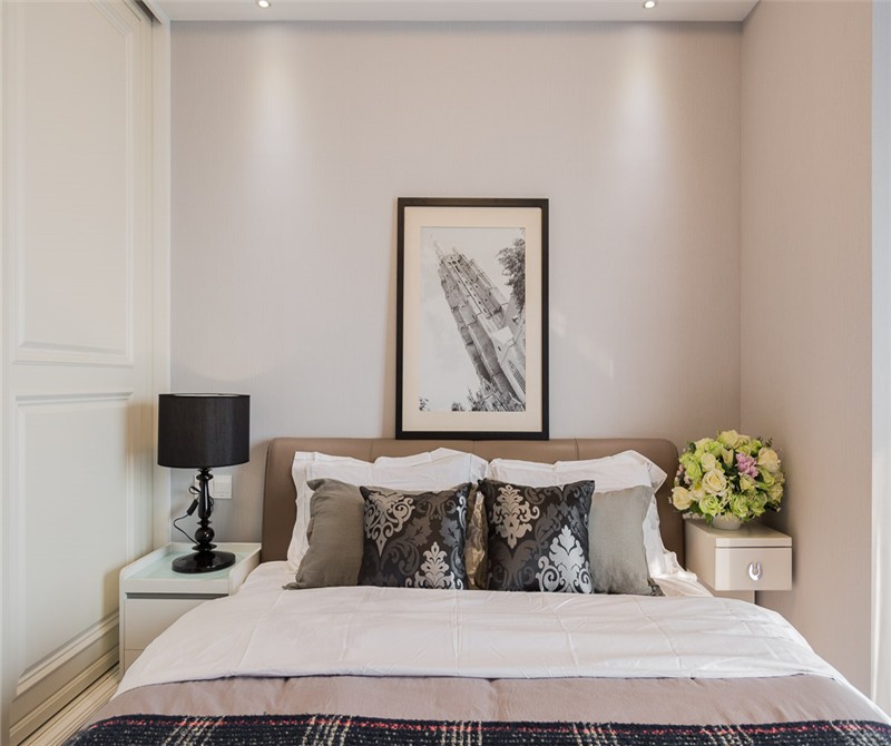 卧室墙面用白色搭配,能使卧室充满温和的氛围,再加上个性的小点缀,更能展现出白色的魅力。另外,加上高亮度的白色,还能使空间更具开阔感,使房间更加敞亮。