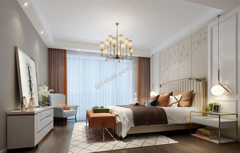 城市立方85平米简约轻奢风格两居室装修案例风效果图