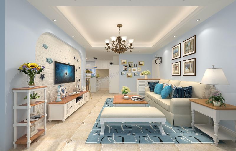 观海台100平米地中海风格三居室装修案例风效果图