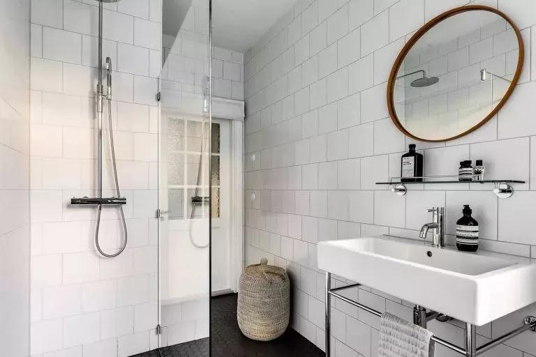 玻璃隔断隔出很小的淋浴间,镜框营造了这里真正的色彩,用以引导视线。按照设计师的指引去看。这样的用心无处不在。