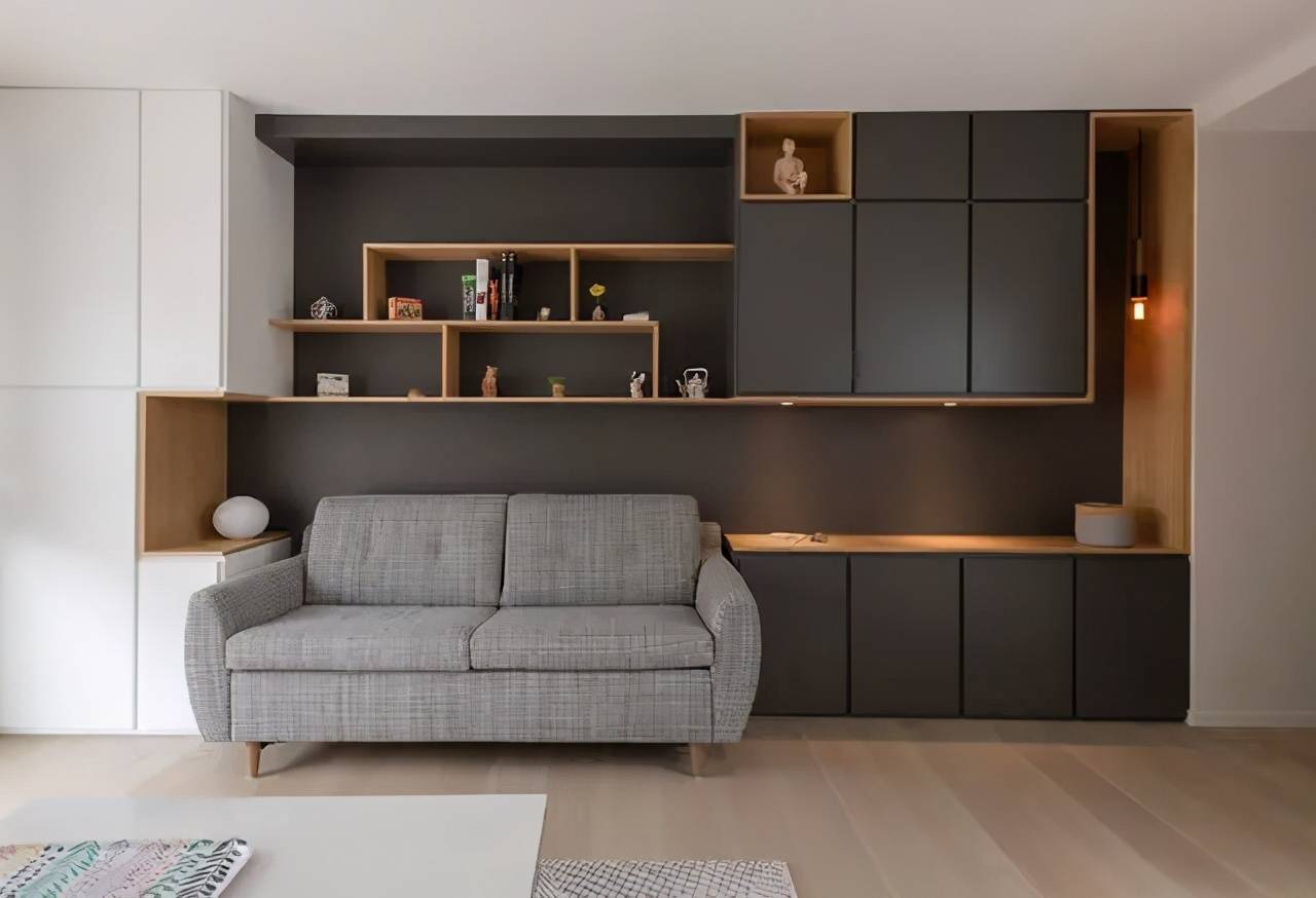 嵌入式家具将家电、收纳柜或者衣柜嵌入墙体内,不凸出来,极大地减少了空间被占用的面积,整体更协调,从而显得空间更大。