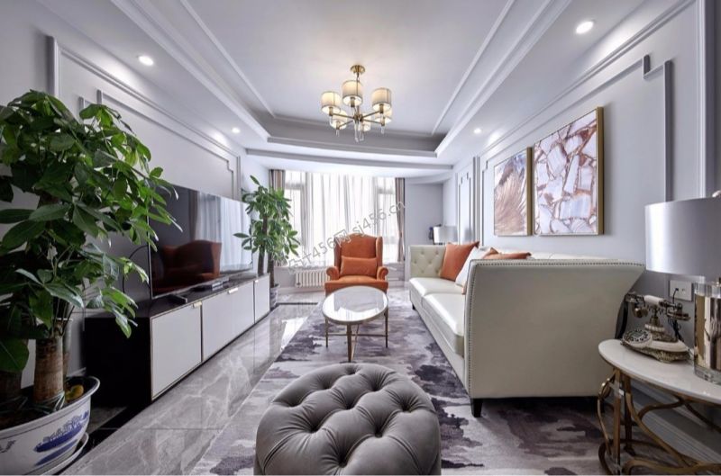 121㎡三居室欧式风格客厅吊顶装修效果图