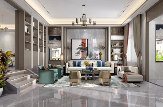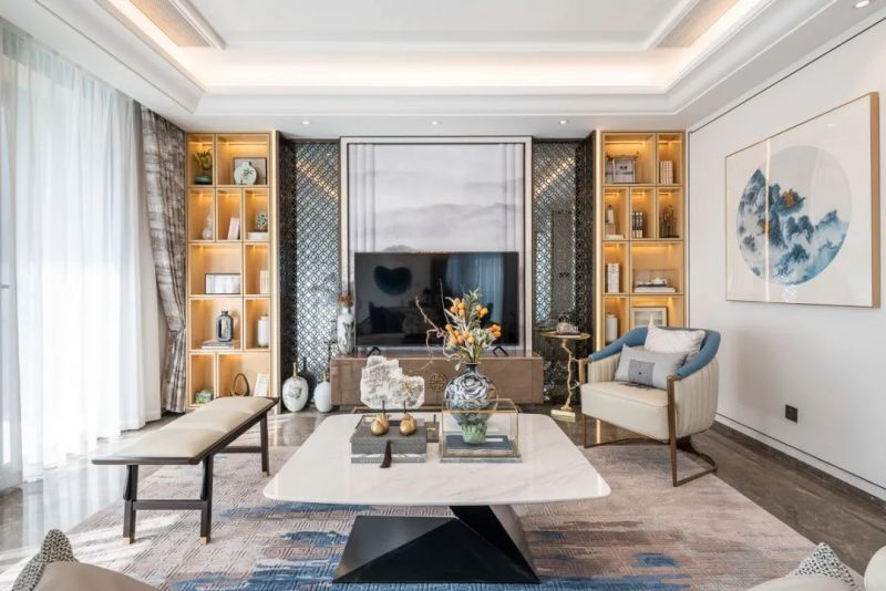 百合山庄145平三居室新中式风格装修案例
