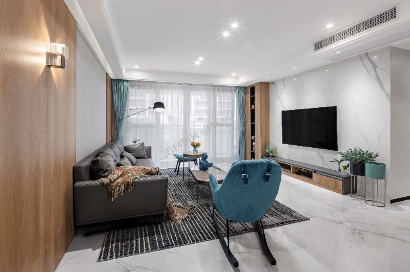 新华公寓136㎡四居室现代简约装修案例风效果图