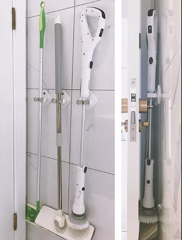 卫生间的位置,从生活习惯的角度讲,是多数家庭日常做清洁的“收尾区”,常用工具放在门后不仅方便存取,省得到处跑路,而且干净整洁,方便收纳的同时晾干。