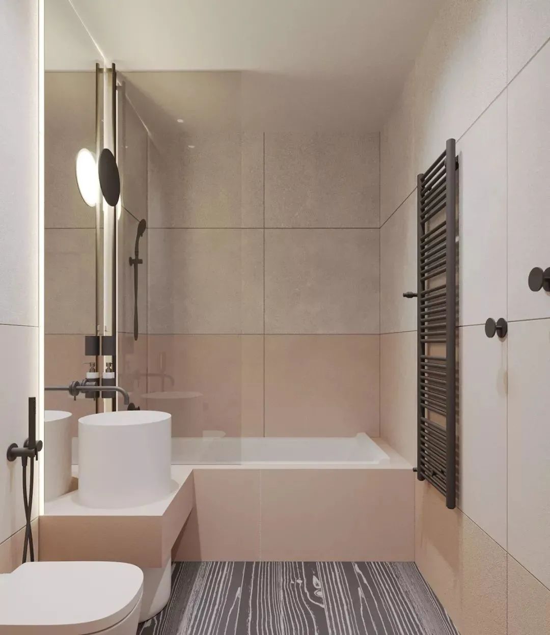 ▲暖灰色+橘粉色的组合,让卫生间显得充满时尚优雅的温馨与大方氛围。
