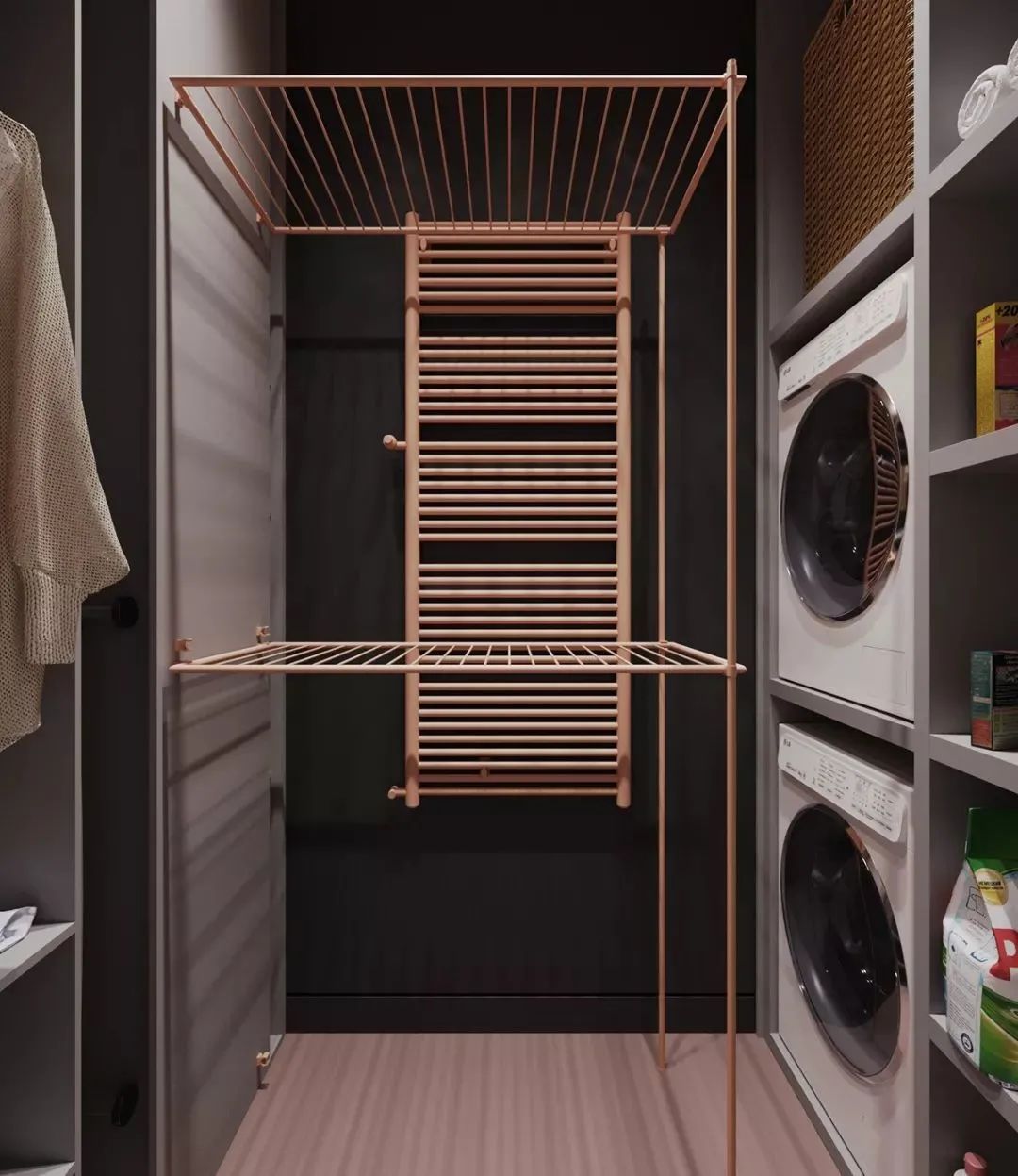 ▲独立的家务室空间,布置洗衣机与烘干机,还有临时挂衣区,提供方便实用的家务功能。