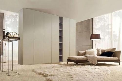 衣柜定制以浅色为主,并使用无把手式设计。浅色还能够提升家居亮度,避免搭配突兀感,无把手凸显时尚范,让家具不会显得过于小气。