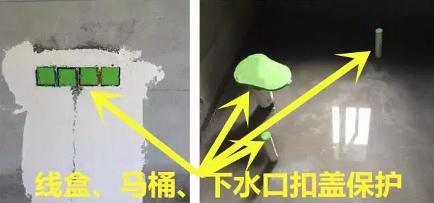 2、水电改造开始前,先把线盒、马桶、下水口等用扣盖保护住,因为水电改造前还有主体改造,有些工人图省事,会将一些垃圾倒入下水口,导致后期水电改造多出很多麻烦。
