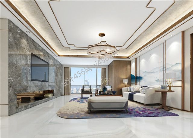 紫御东方东港东·17度150平四居室现代风格装修案例风效果图