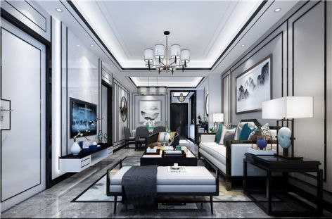 绿城九龙仓桃源里120平三居室新中式风格装修案例风效果图