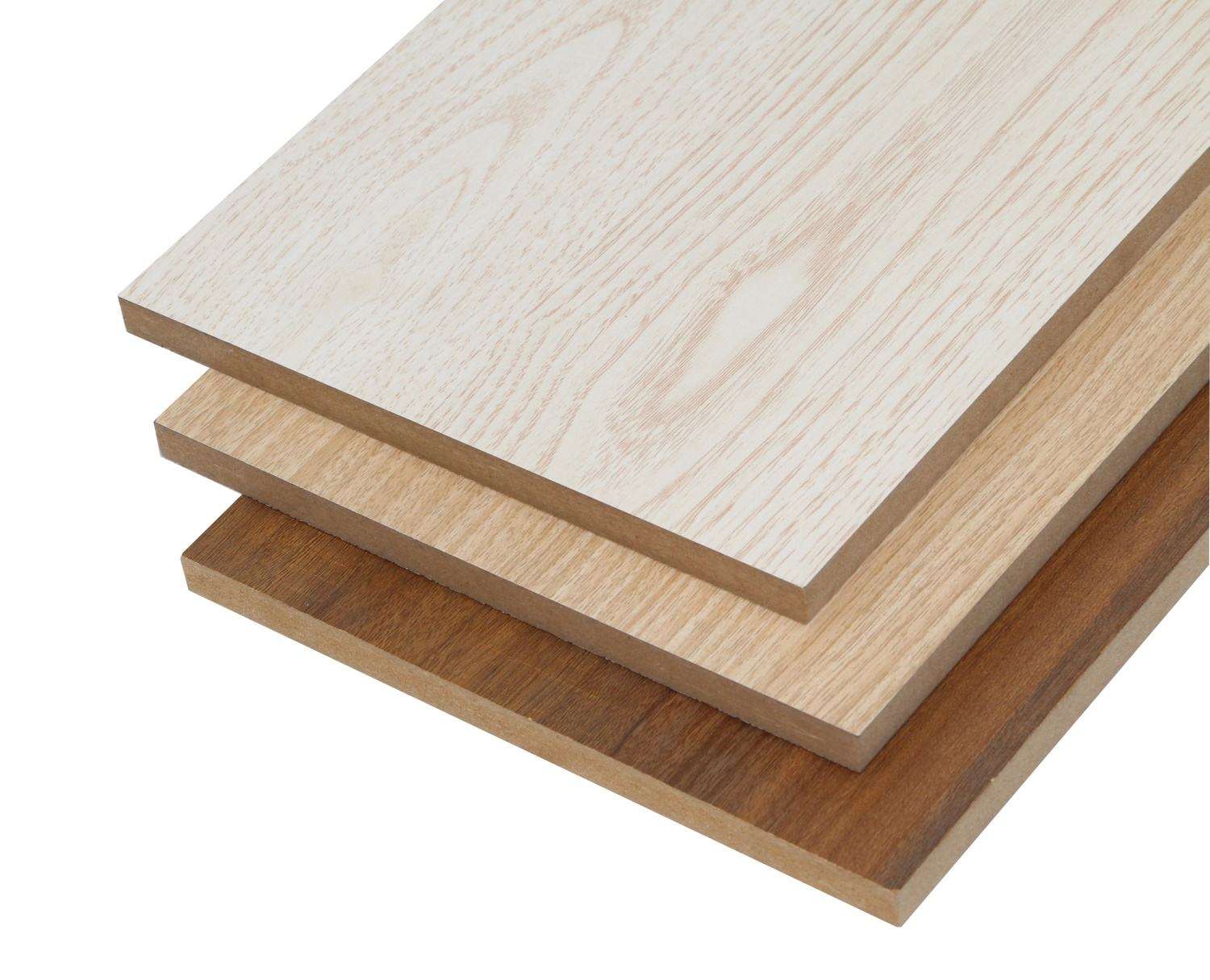 是以木质纤维或者其他植物纤维作为原料,经打碎、分离、干燥后加入脲醛树脂或其他胶粘剂经热压制成的人造板材,无需后期处理。相对于原木和禾香板来说价格较低,且容易加工、材质均匀、物理性能好不易受潮变形。表面的三聚氰胺饰面有防潮、防腐、耐磨和高温的特性。