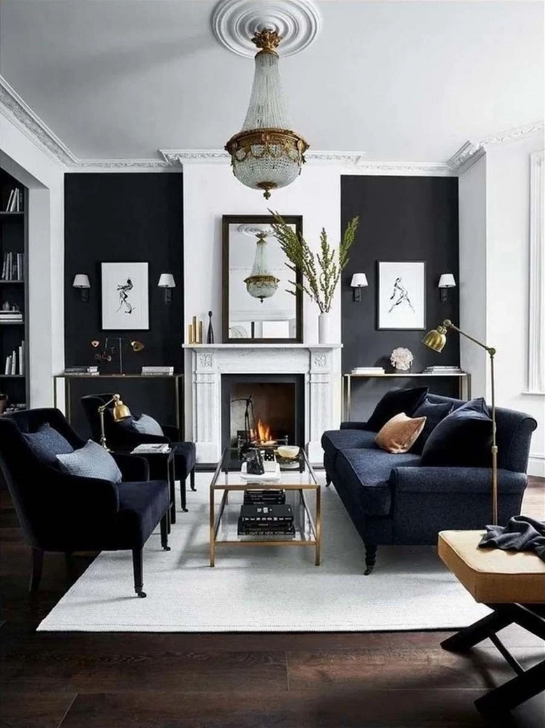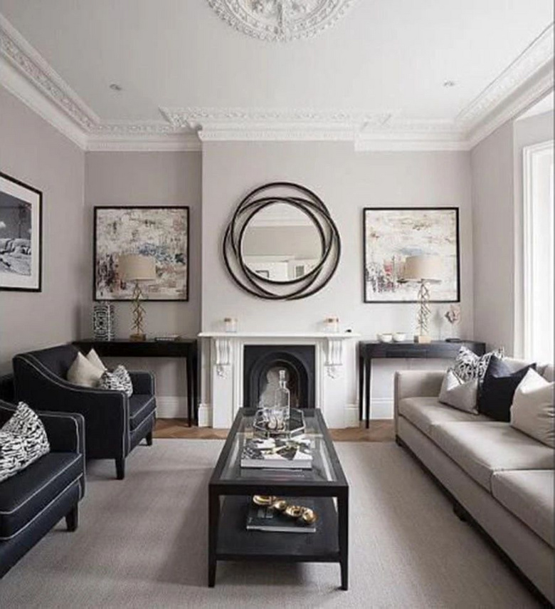 美式风格常见的对称设计,以壁炉为中心,两侧可放置边几、斗柜,搭配一面漂亮的装饰镜,优雅满分!