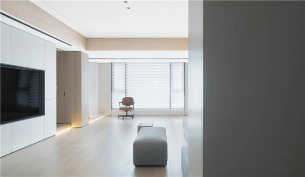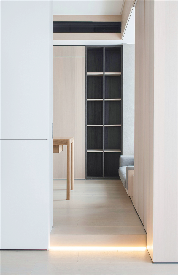 多功能房的门与墙面融合为一,拉伸了空间纵深感,扩大了视觉的层次。给屋主提供一个私人办公场所,即使在家,也可以享受私人清净空间。