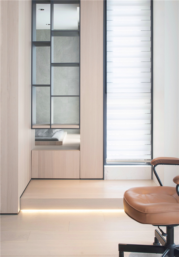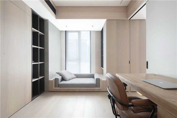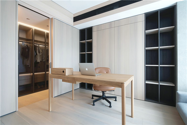 书房除办公之外也同时加入衣帽间和壁床,使得功能更加丰富,增加空间附加属性,美观与实用性兼得,一点也不浪费。