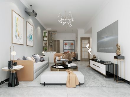 湾里南小区135㎡三居室现代风格装修案例风效果图