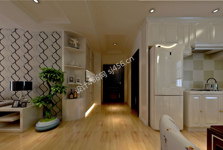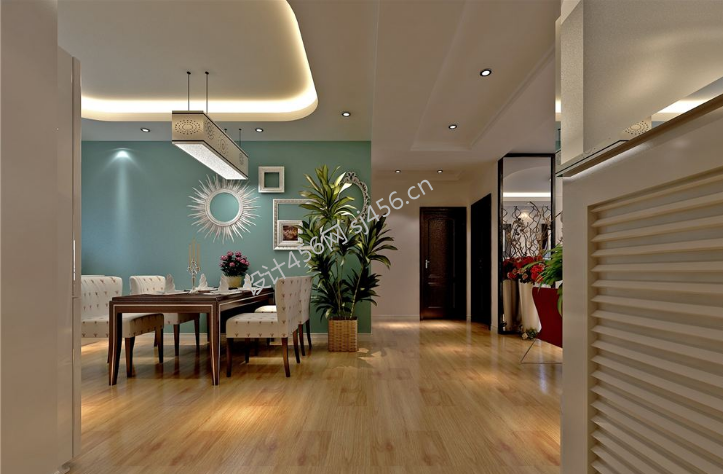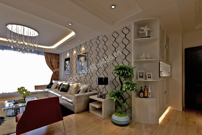 钻石湾三室两厅现代风格暖色调效果图风效果图