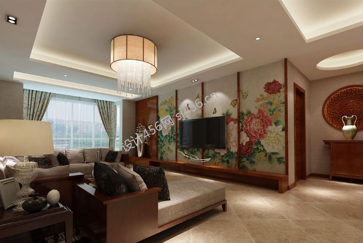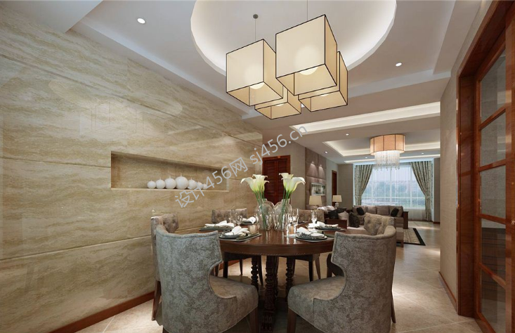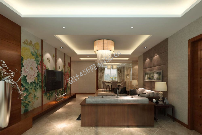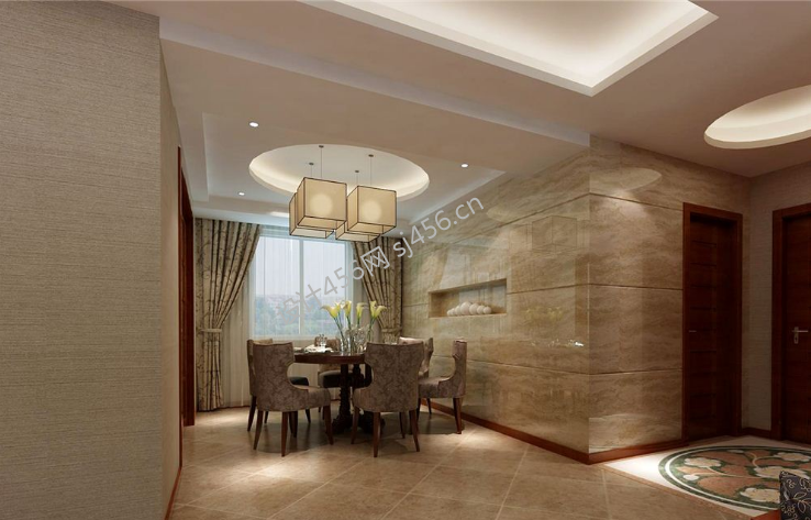 钻石湾三室两厅现代风格暖色调效果图风效果图