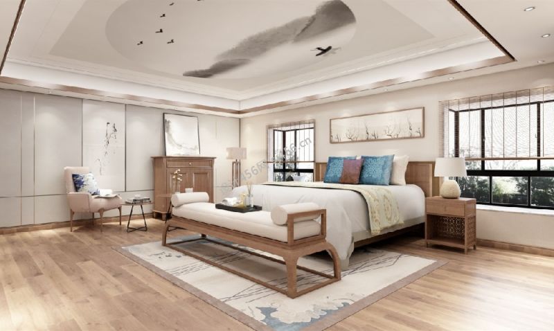 140㎡三居室新中式风格卧室装修设计图