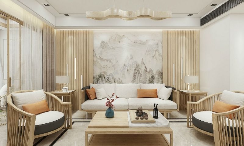 海湾城140㎡三居室新中式风格装修案例风效果图