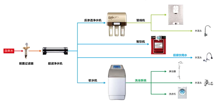 新风系统是过滤空气,净水系统是过滤水。净水系统的本质很简单,就是用各种网、膜、芯等滤材进行层层过滤。全屋净水系统,通常由前置过滤器、中央净水机、中央软水机和末端直饮净水器组成。