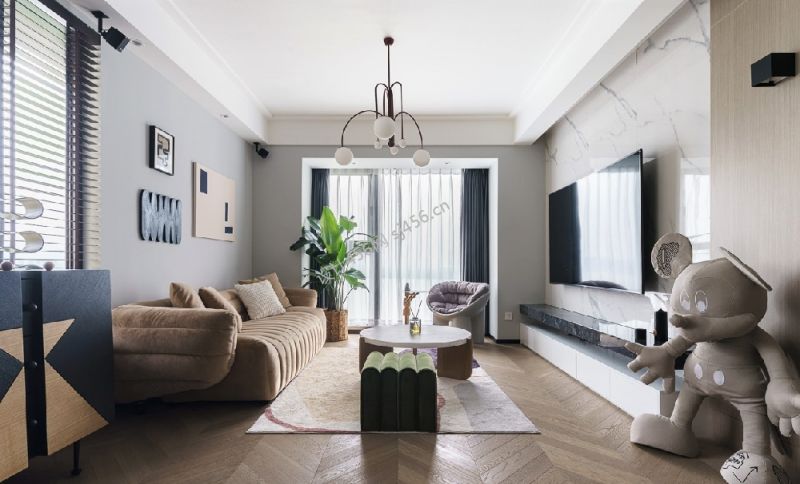 星海国宝135㎡三居室现代轻奢装修案例风效果图