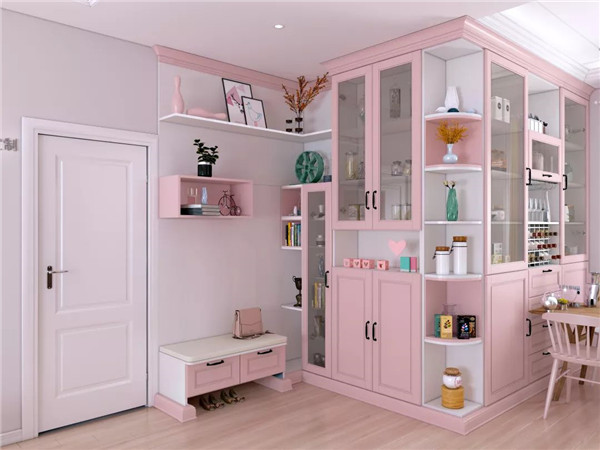 2、鞋柜底部悬空:很多人家里有鞋柜,但是常更换的鞋子又懒得打开柜门放进去,从而造成一堆鞋子乱放在地面上的情况,为了避免这个情况发生,可以在定制鞋柜的时候,鞋柜底部悬空,预留十几公分的高度,用来摆放常更换的鞋子,这样就不会满地都是鞋子了,可以整齐的摆放在鞋柜下方了。