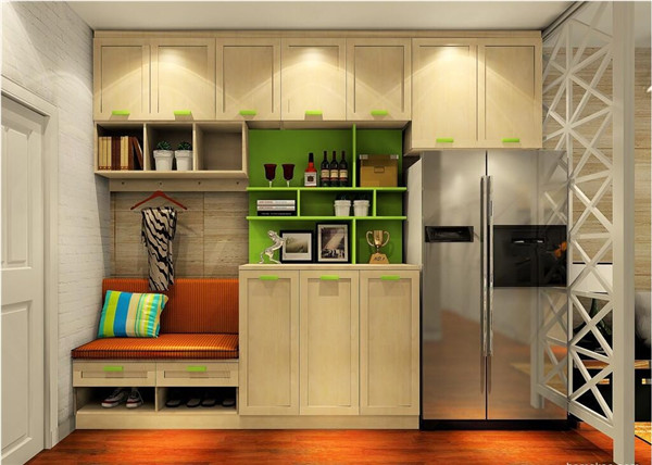 1、鞋柜增加换鞋凳:鞋柜想要大容量,最好就要做到顶设计,这样鞋柜上方的空间就不会浪费了,另外鞋柜除了放鞋子方便,还要考虑到一点,那就是换鞋要方便一些,所以在定制鞋柜的时候,如果空间足够的话,最好预留一个位置出来当换鞋凳,这样换鞋子的时候,就不用那么辛苦了。如果实在没有空间做换鞋凳的话,也可以买一张折叠的凳子或者独立的凳子来当换鞋凳。