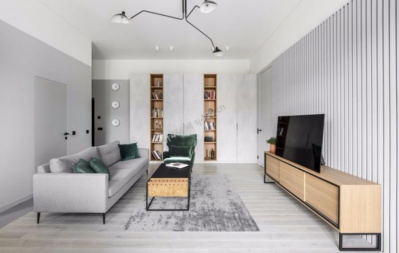 现代简约风格三室客厅书架设计图