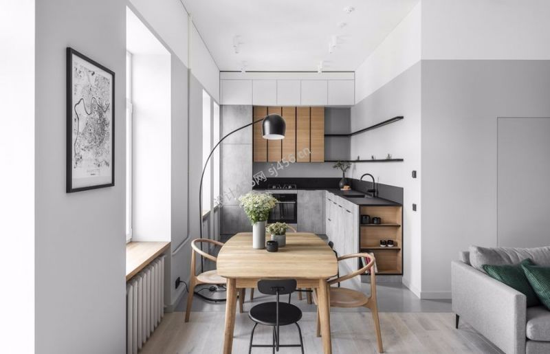 现代简约风格三室厨房餐厅一体装修设计图