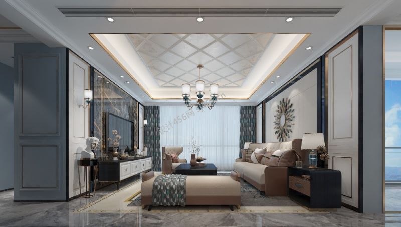 中铁诺德滨海花园(二期)134平三居室现代轻奢装修案例风效果图