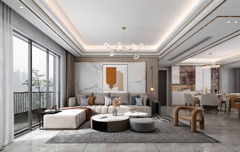 绿国万象都荟127㎡三居室现代轻奢装修案例风效果图